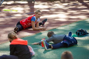 Olympijský trénink s gymnastkou Komrskovou na ZŠ Slovenská ve Zlíně