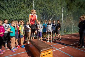 Olympijský trénink s gymnastkou Komrskovou na ZŠ Slovenská ve Zlíně